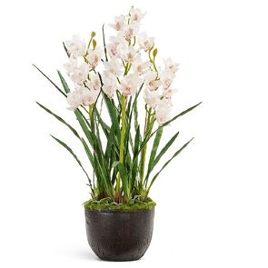 Орхидея Цимбидиум куст белый 3 ветки с имитацией земли (без кашпо)