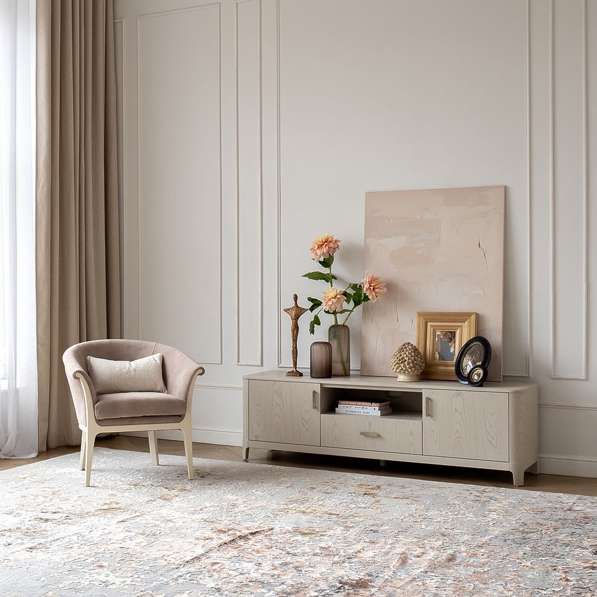 Кресло Amore, отделка белая ткань Lyssa, черное поворотное основание