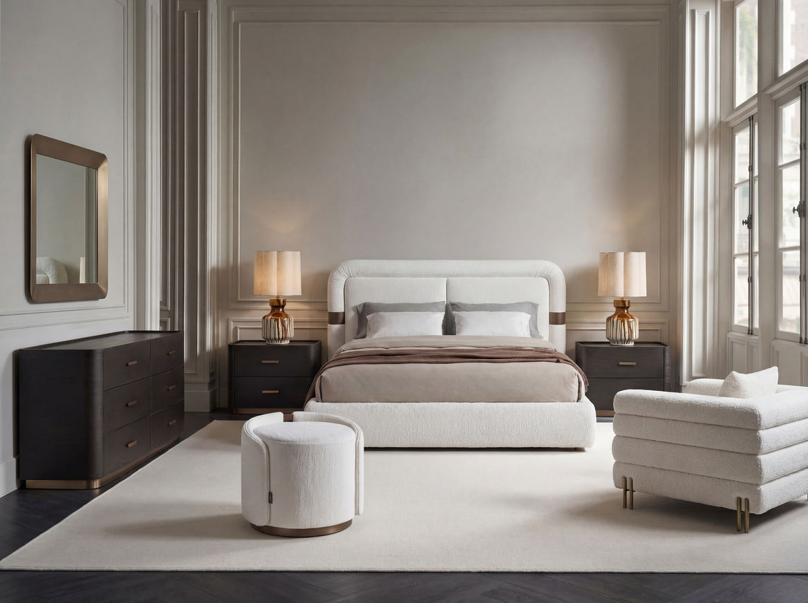 Прикроватная тумбочка, отделка бежевый блестящий лак