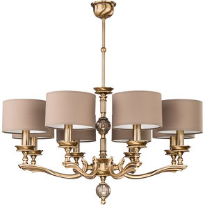 Светильник Empoli люстра, 8 рожков, Kutek mood, никель, линия, Абажур к светильнику 03-8 (экри, цилиндр)), EMP-ZWL-8 (N)