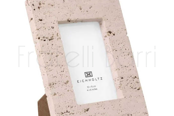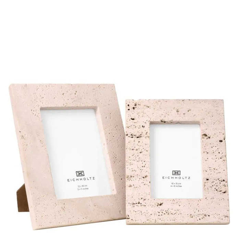 Комплект рамок для фото выполнена в современном стиле из травертина и прозрачного стекла. Оснащена подставкой.