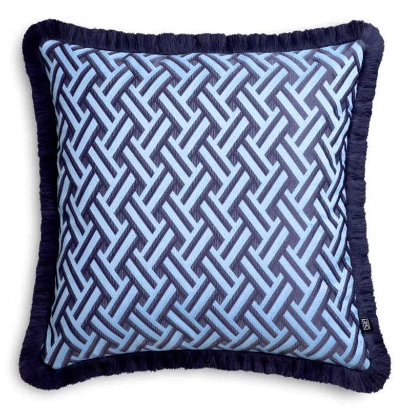 Подушка Doris L, отделка синяя ткань Doris, темно-синяя бахрома