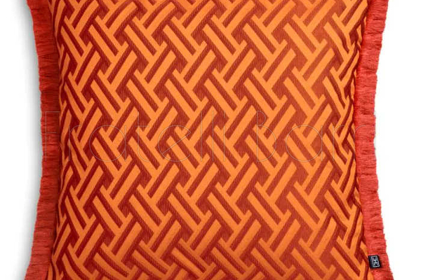 Подушка Doris L, отделка оранжевая ткань Doris, темно-оранжевая бахрома