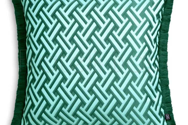 Подушка Doris L, отделка зеленая ткань Doris, темно-зеленая бахрома