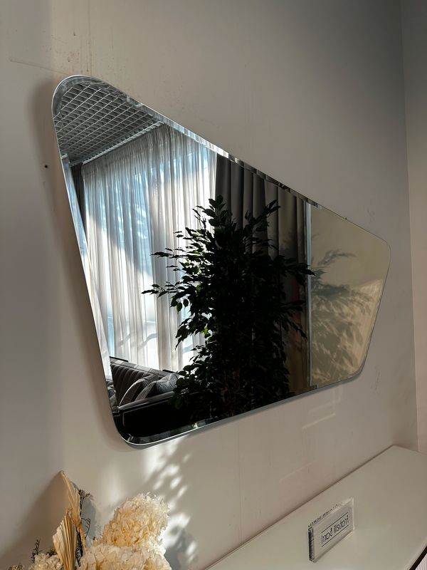 Зеркало выполнено в стиле Ар-деко. Оригинальная форма зеркала придаст изюминку интерьеру.