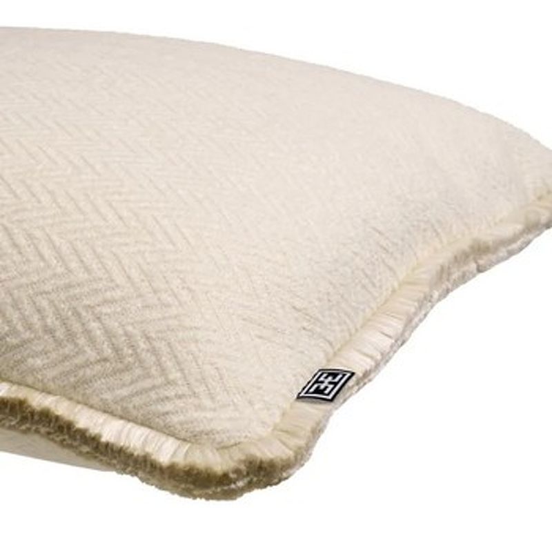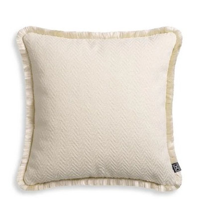Квадратная подушка выполнена в классическом стиле и дополнена бахромой.