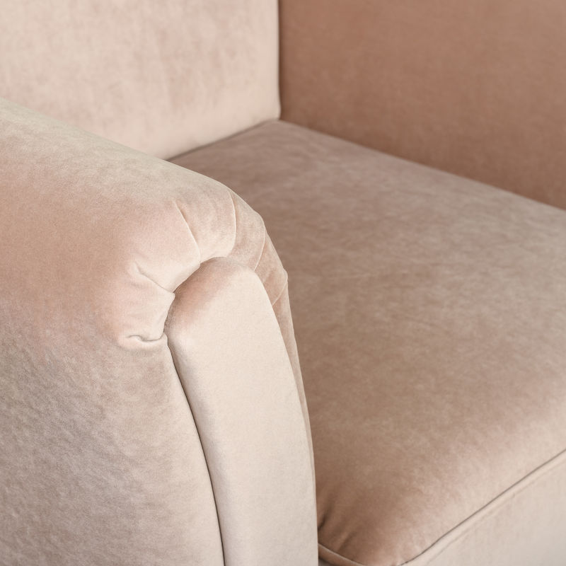 Каркас кресла изготовлен из металла и МДФ. Наполнитель подлокотников и царги: эластичный ППУ плотностью 25 и 22 кг/м3 и дополнительно обернут холотеком плотностью 100г/м2.