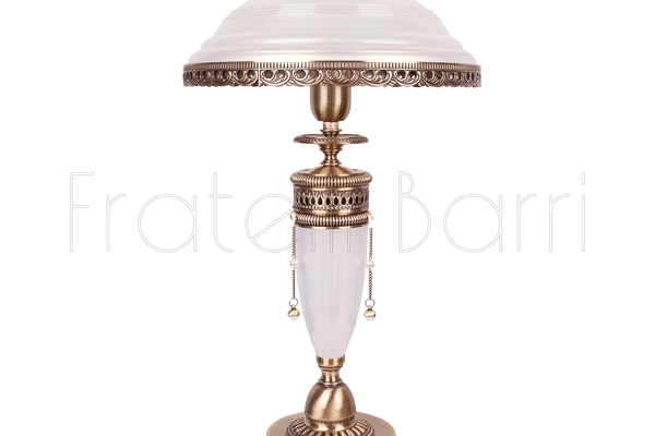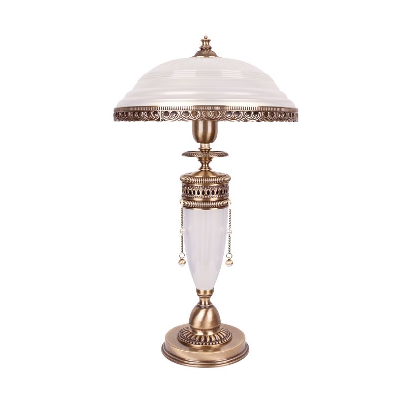 Настольная лампа выполнена в классическом стиле из латуни. Основание из патины с нежнейшими цепочками жемчуга дополняет элегантный стеклянный абажур. Функциональная и изящная модель станет достойным дополнением интерьера. Рассчитано на одну лампу.