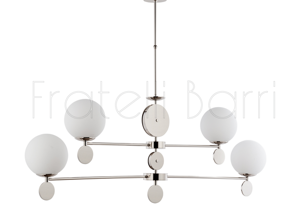 Элегантная люстра выполнена в современном стиле из латуни. Функциональная и изящная модель станет достойным дополнением интерьера.