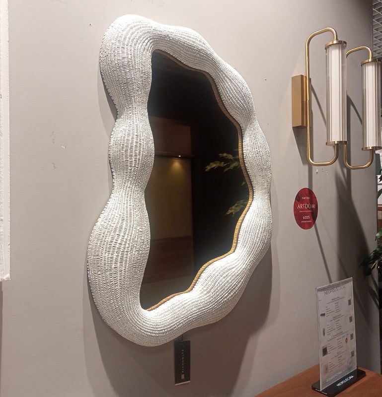 Зеркало от нидерландской фабрики Eichholtz - это очаровательный декоративный элемент, излучающий элегантность и шарм. Его белая отделка красиво дополняет текстурированный край и органическую форму, делая его идеальным для украшения вашего интерьера.