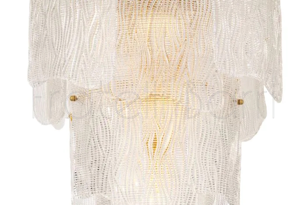 Благодаря текстурированному стеклу, люстра отражает теплое сияющее свечение, а обрамление из состаренной латуни добавляет роскоши.