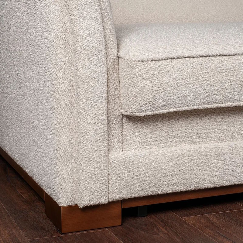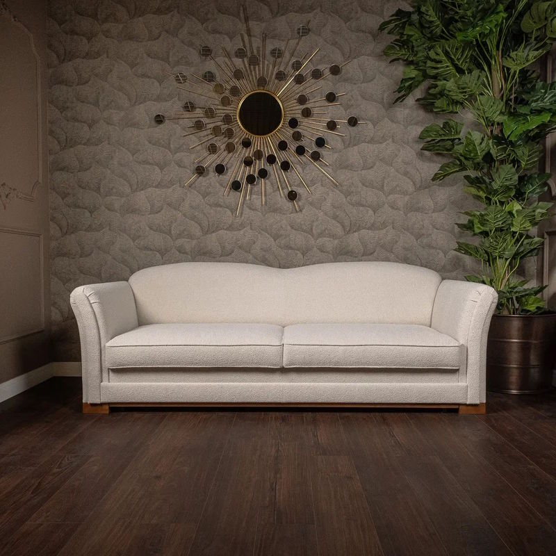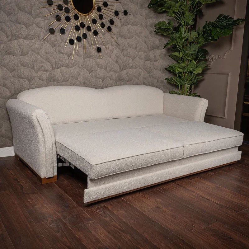 Каркас дивана-кровати изготовлен из металла и МДФ. Наполнитель подлокотников и царги: эластичный ППУ плотностью 25 и 22 кг/м3 и дополнительно обернут холотеком плотностью 100г/м2.