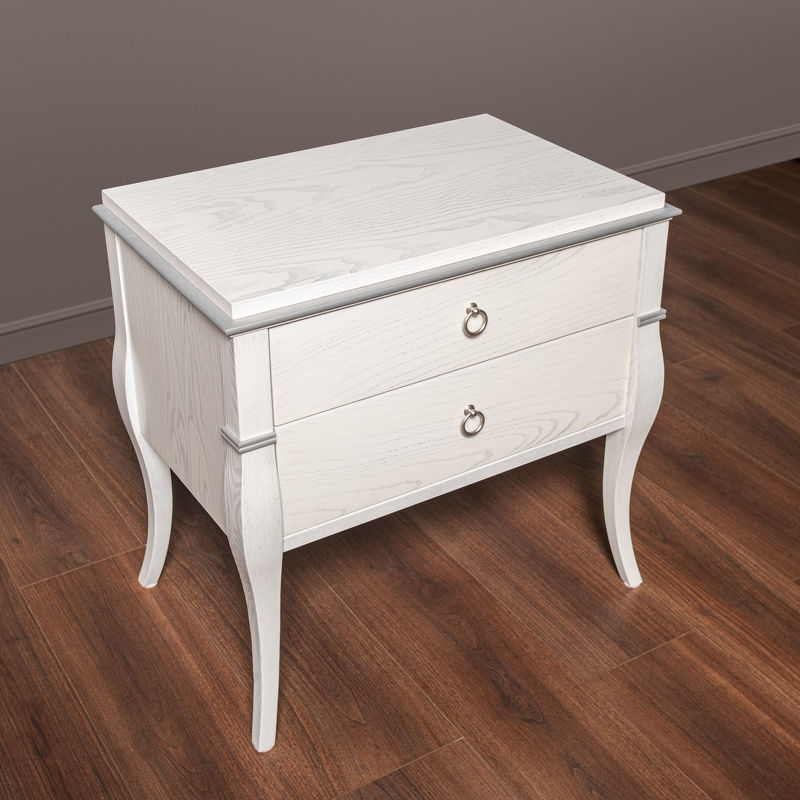Внутренние детали корпусов шкафов из ДСП ламинат лен. Применена современная фурнитура, позволяющая значительно сократить и упростить сборку изделия. Ящики установлены на направляющих скрытого монтажа с демпфированием.