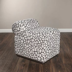 Каркас пуфа выполнен из массива березы, наполнитель - пенополиуретан. Пуфик обит тканью из ассортимента фабрики, основание металлическое в цвете матовый никель.