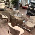 Столешница стола выполнена из прозрачного закаленного стекла. Основание - металл в цвете матовая латунь.