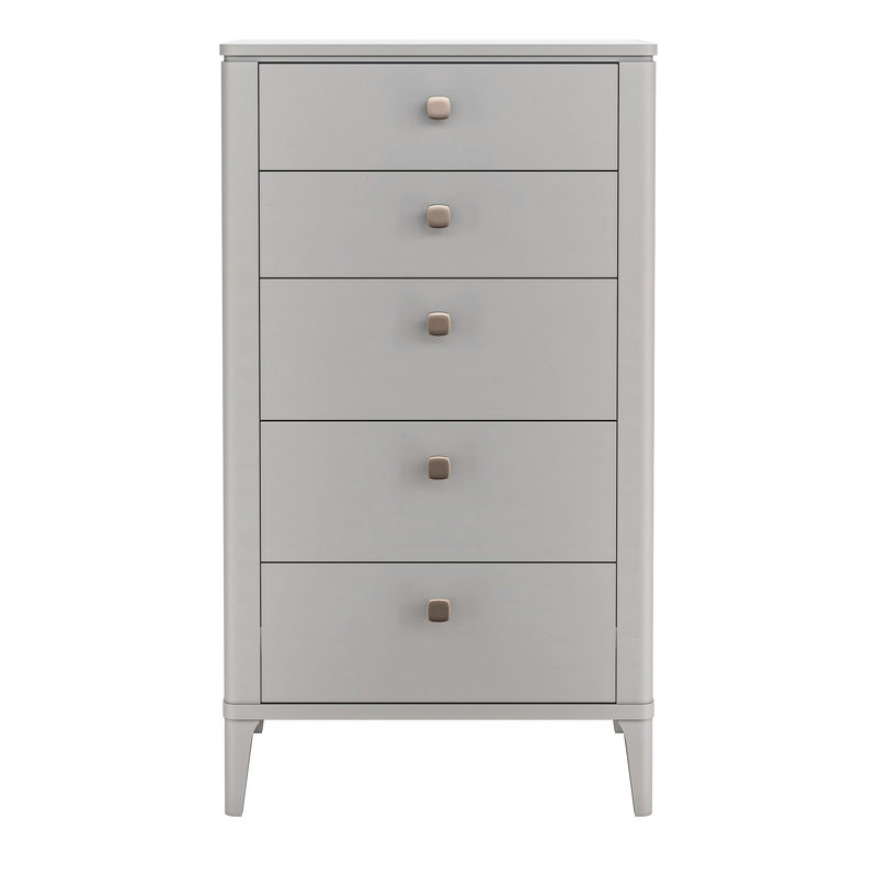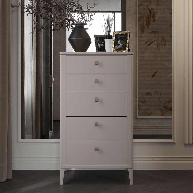 У комода 5 ящиков - 2 небольшой и 3 полноценной высоты. Ящики с направляющими скрытого монтажа и системой плавного закрывания soft closing.