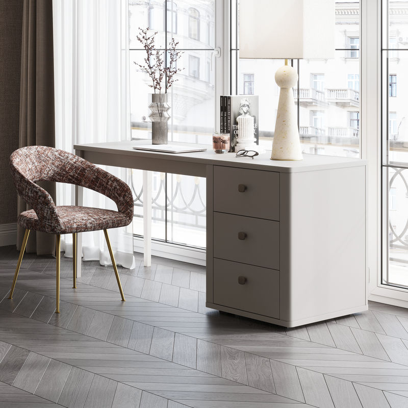 Изготовлен из высококачественного МДФ класса E1, ножки - массив дерева. Направляющие скрытого монтажа с демпфированием для плавного закрывания (soft closing). Ручки металлическая, тип кнопка, цвет бронза.