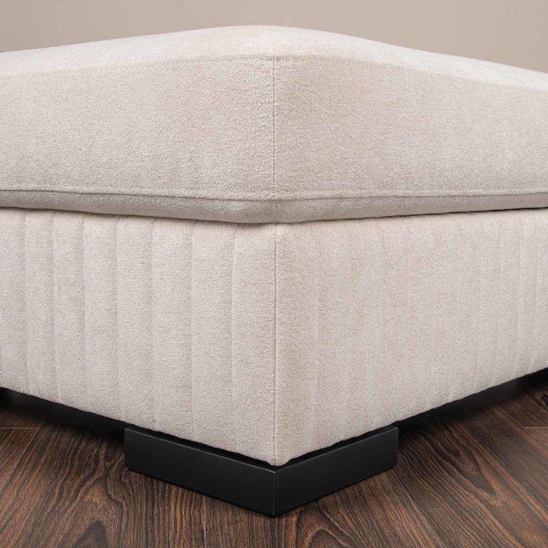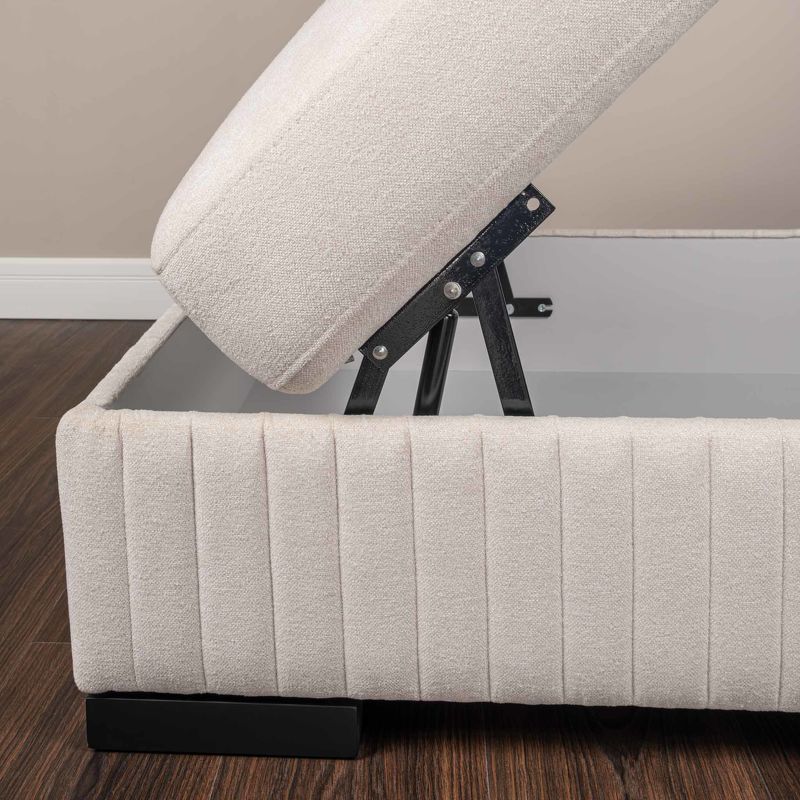 Пуф оснащен подъёмным механизмом с большим местом для хранения.