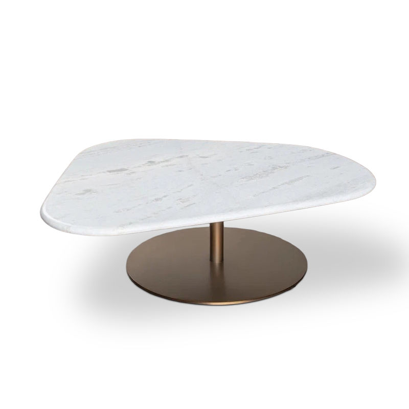 Столешница - голубой мрамор Dream blue Matt. Основание столика металлическое в цвете бронза.