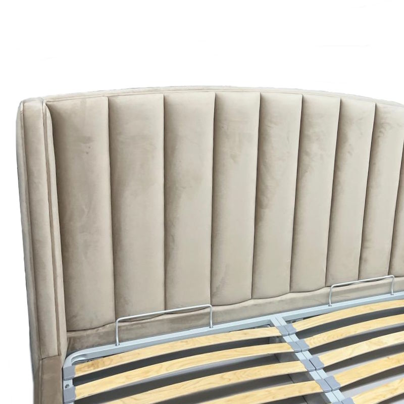 Роскошная двуспальная кровать с вертикальной стежкой на изголовье и с подъемным механизмом. Модель выполнена в стиле неоклассика и также подойдет под интерьеры в стиле ар-деко и современный.