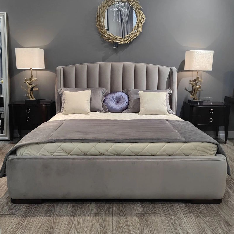 Роскошная двуспальная кровать с вертикальной стежкой на изголовье и с подъемным механизмом. Модель выполнена в стиле неоклассика и также подойдет под интерьеры в стиле ар-деко и современный.