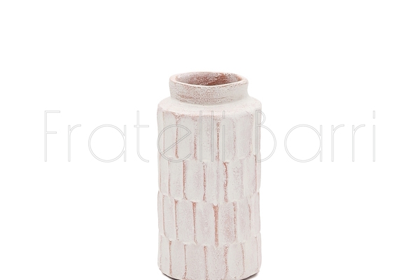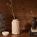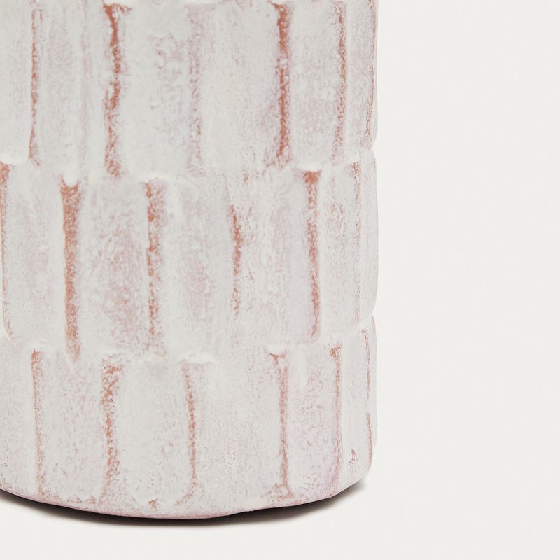 Ваза полностью сделана из переработанной бумаги по технике папье-маше. Простая цилиндрическая форма в полной мере демонстрирует фактурность поверхности, которую также подчеркивает глянцевое белое покрытие.