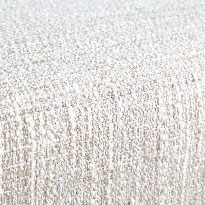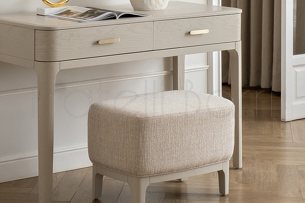 Пуфик выполнен из высококачественного МДФ, ножки - массив дерева, ткань - шенилл в бело-серых тонах.
