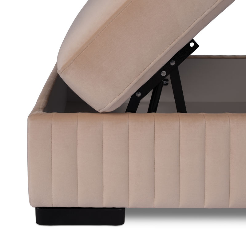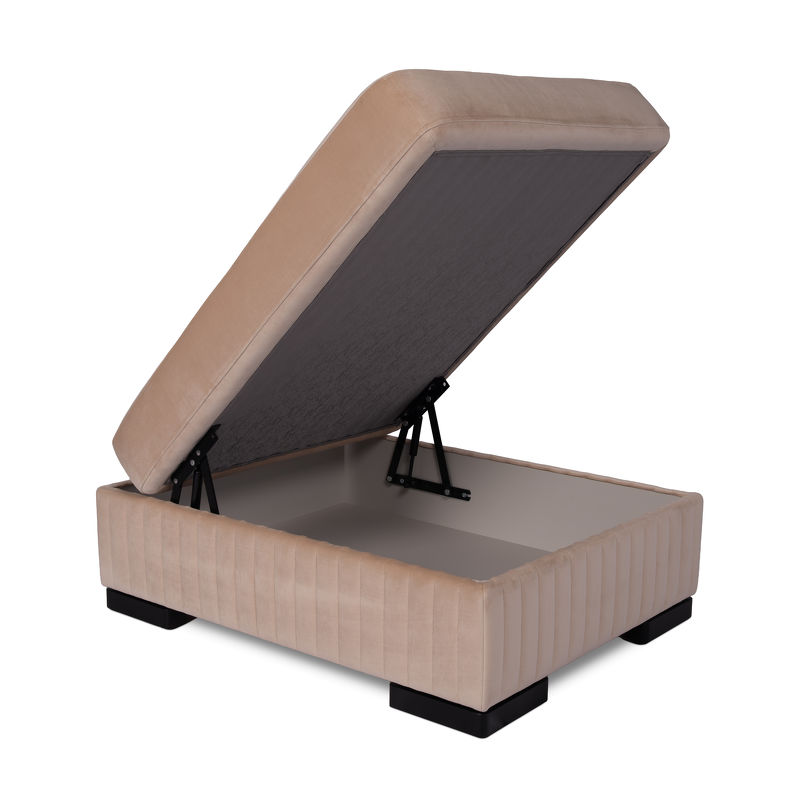 Пуф оснащен подъёмным механизмом с большим местом для хранения.