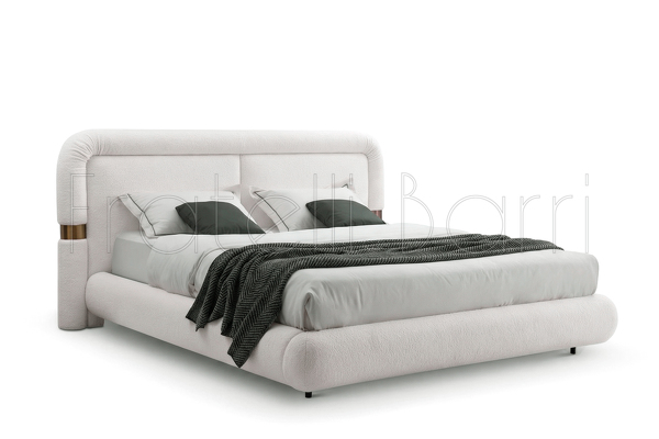 Кровать с решеткой, отделка матовый бежевый лак, ткань ANIZO-01