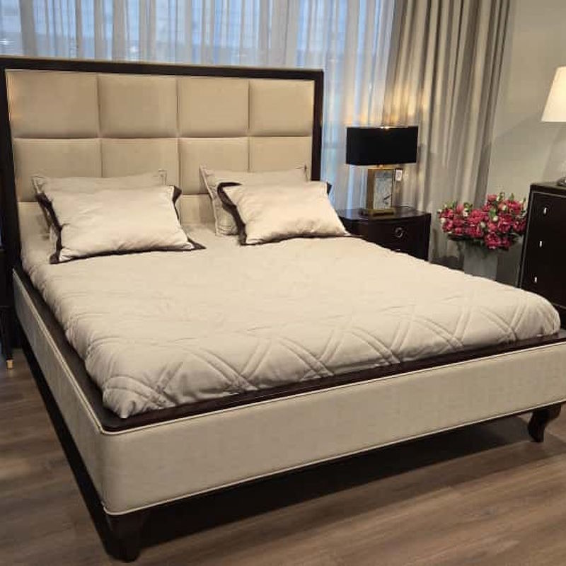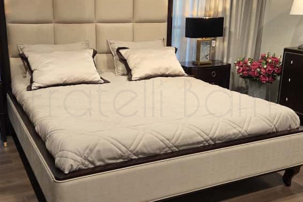Кровать с решеткой, отделка шпон вишни C, ткань светло-бежевый велюр