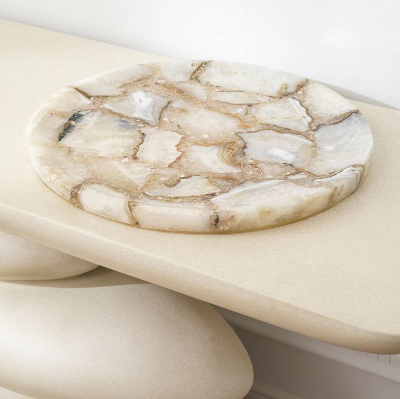 Поднос Sonora Round от нидерландской фабрики Eichholtz, выполнен из агата, этот поднос с замысловатыми прожилками и природными узорами станет изысканным акцентом в любом помещении.