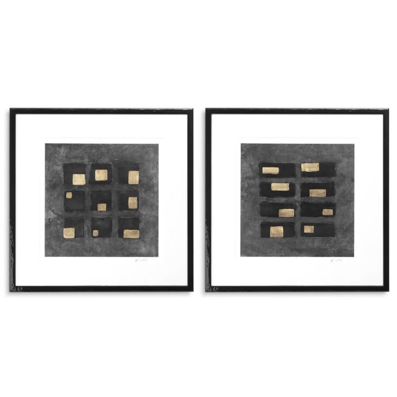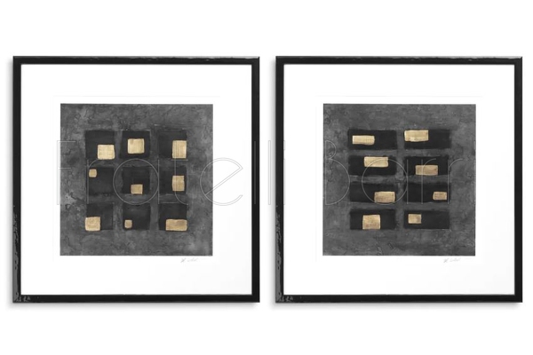 Картина Print Washed Black Squares by Michael Willett (комплект 2 шт), отделка черное дерево, прозрачное стекло