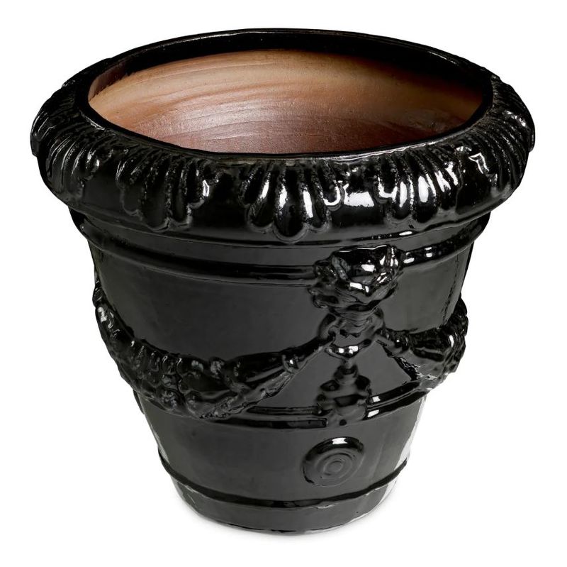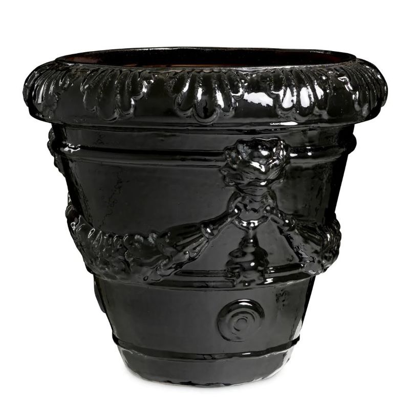 Кашпо для цветов Toulon от нидерландской фабрики Eichholtz, выполнено из керамики черного цвета.