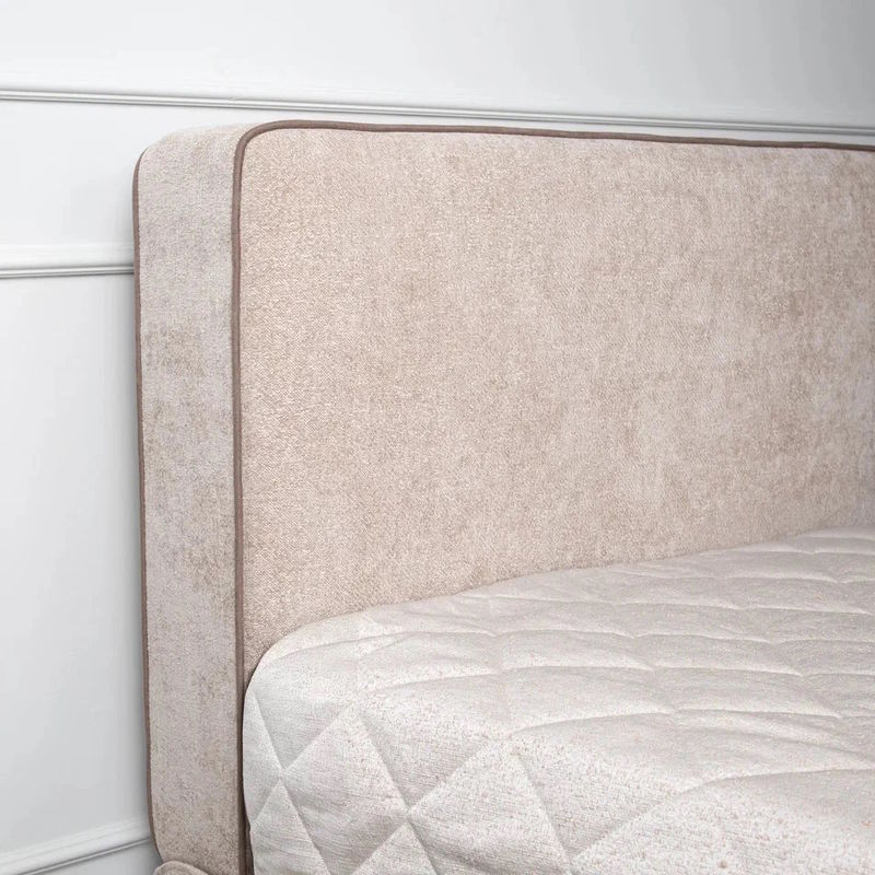 Кровать с решеткой, отделка матовый бежевый лак, ткань Jeanie-02