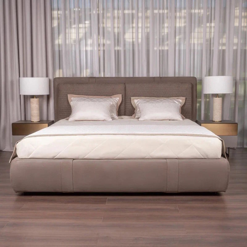 Основание, изголовье и декоративная часть изголовья с рисунком "соты". Ножки в черном матовом цвете.