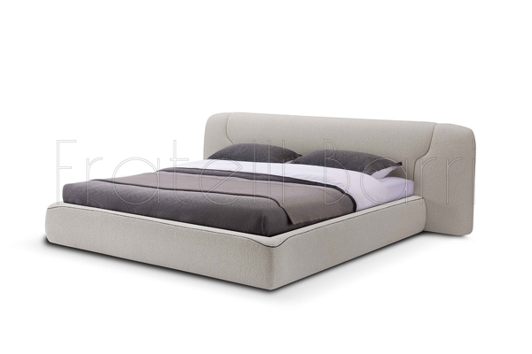 Двуспальная кровать бренда Fratelli Barri с мягким изголовьем. Выполнена в отделке тканью, с окантовкой из искусственной кожи, ножки черные.