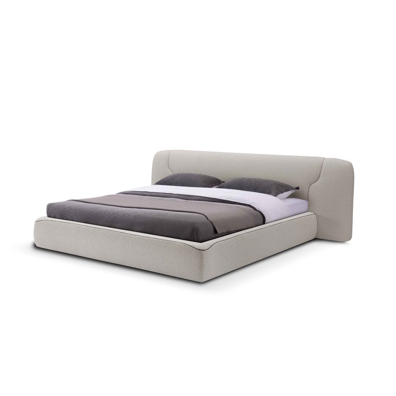 Двуспальная кровать бренда Fratelli Barri с мягким изголовьем. Выполнена в отделке тканью, с окантовкой из искусственной кожи, ножки черные.