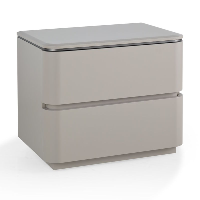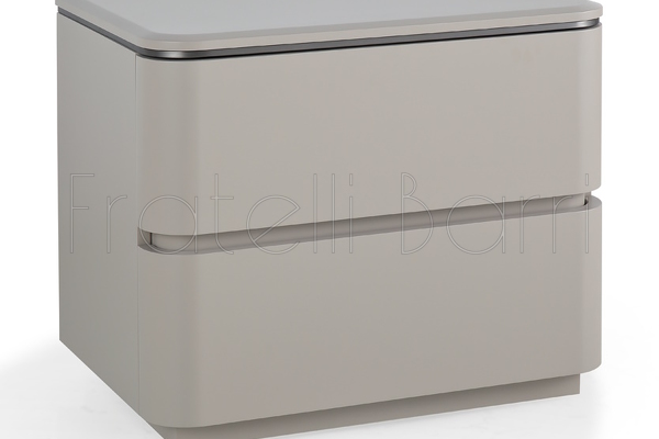 Прикроватная тумбочка бренда Fratelli Barri, выполнена в стиле минимализм. Тумба изготовлена из высококачественного МДФ в отделке - матовый серо-бежевый лак, декоративная вставка - брашированный никель.