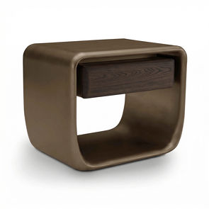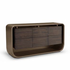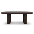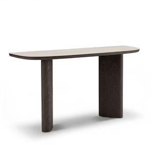 Столешница и ножки выполнены в отделке матовым шпоном вяза, что обеспечивает визуальное единство конструкции. Натуральная текстура дерева сохраняет выразительность, а матовая поверхность придает материалу благородную сдержанность.
