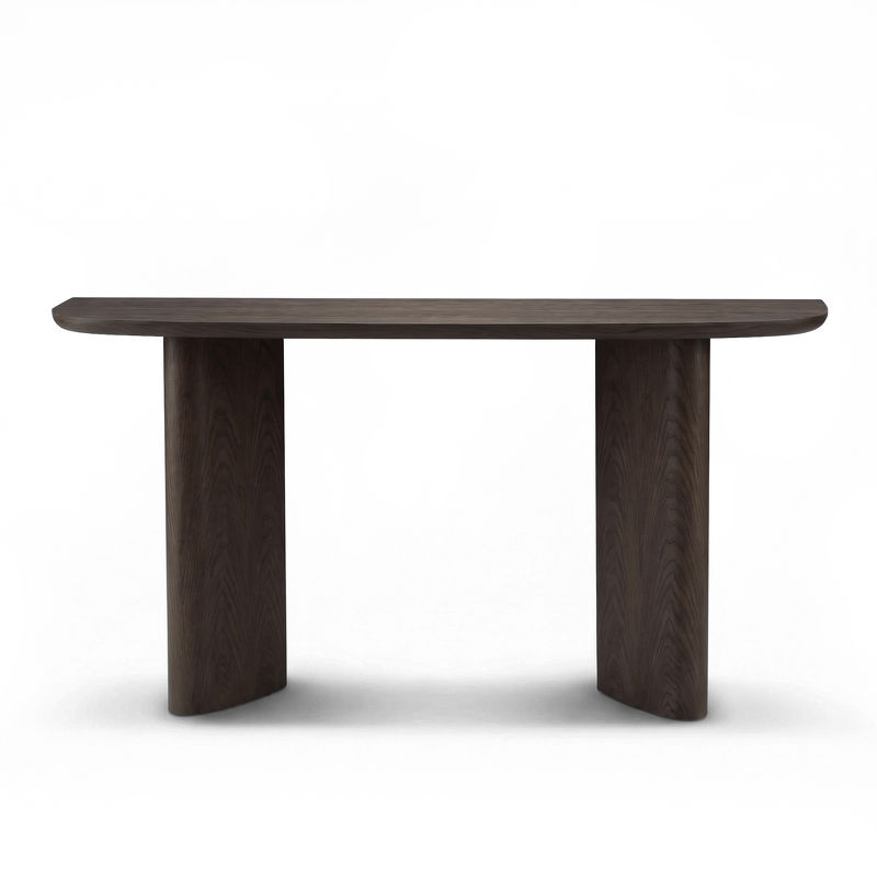Столешница и ножки выполнены в отделке матовым шпоном вяза, что обеспечивает визуальное единство конструкции. Натуральная текстура дерева сохраняет выразительность, а матовая поверхность придает материалу благородную сдержанность.