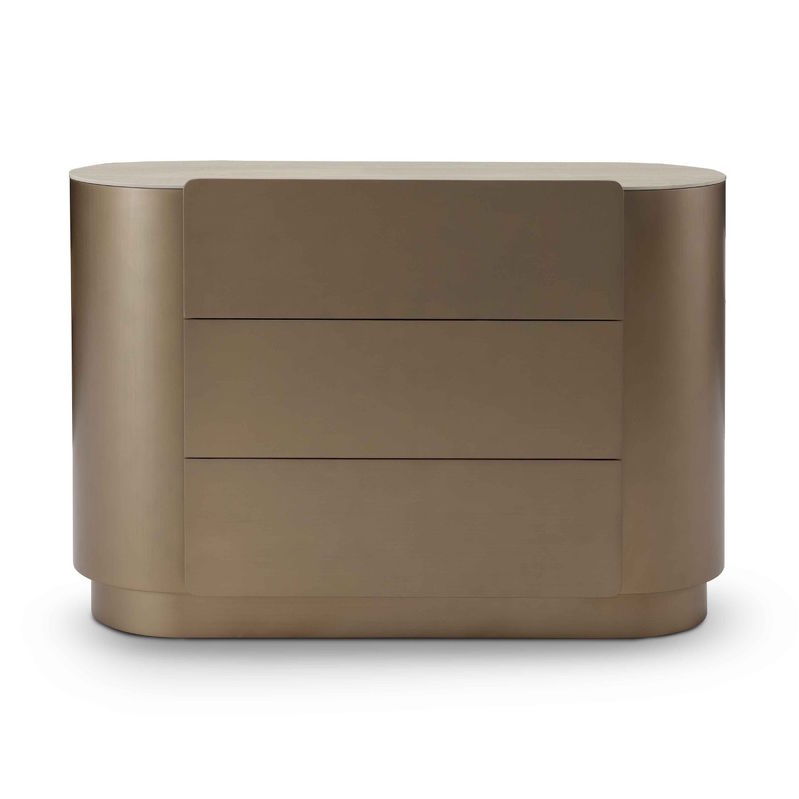 Комод выполнен в отделке цвета латунь, ящики внутри меламин.