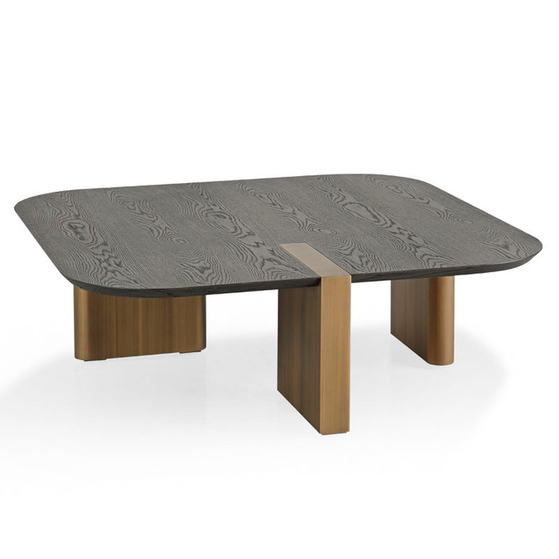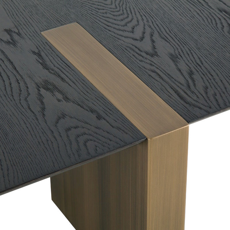 Стол изготовлен из высококачественного МДФ, что гарантирует прочность и долговечность конструкции. Столешница в отделке - натуральный шпон вяза. Ножки в цвете латунь.