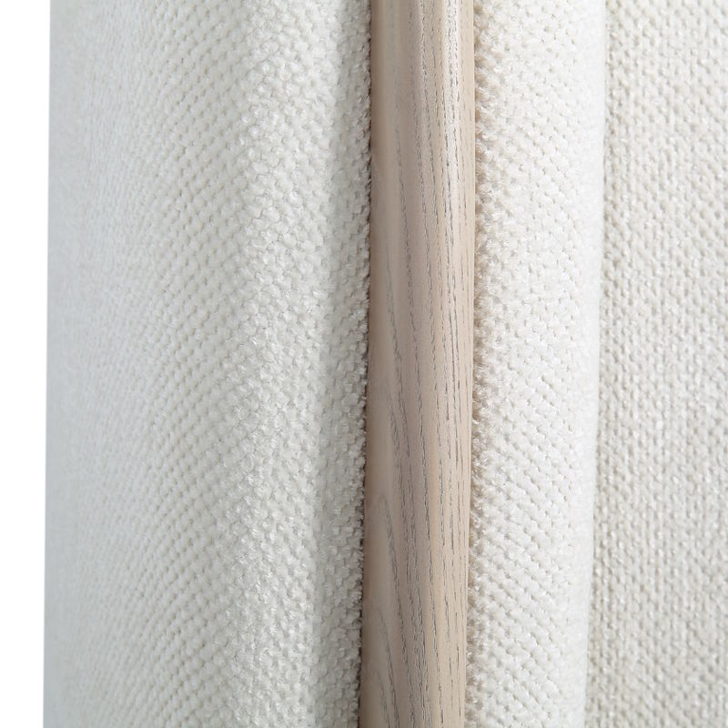 Кровать выполнена в обивке тканью, с декоративными деталями в натуральном шпоне дуба. Благодаря лаконичному дизайну кровать можно стилизовать в скандинавский стиль, современный или минимализм.