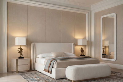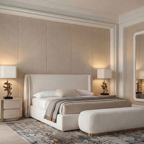 Двуспальная кровать с мягким изголовьем с "ушками" от бренда Fratelli Barri в современном стиле.