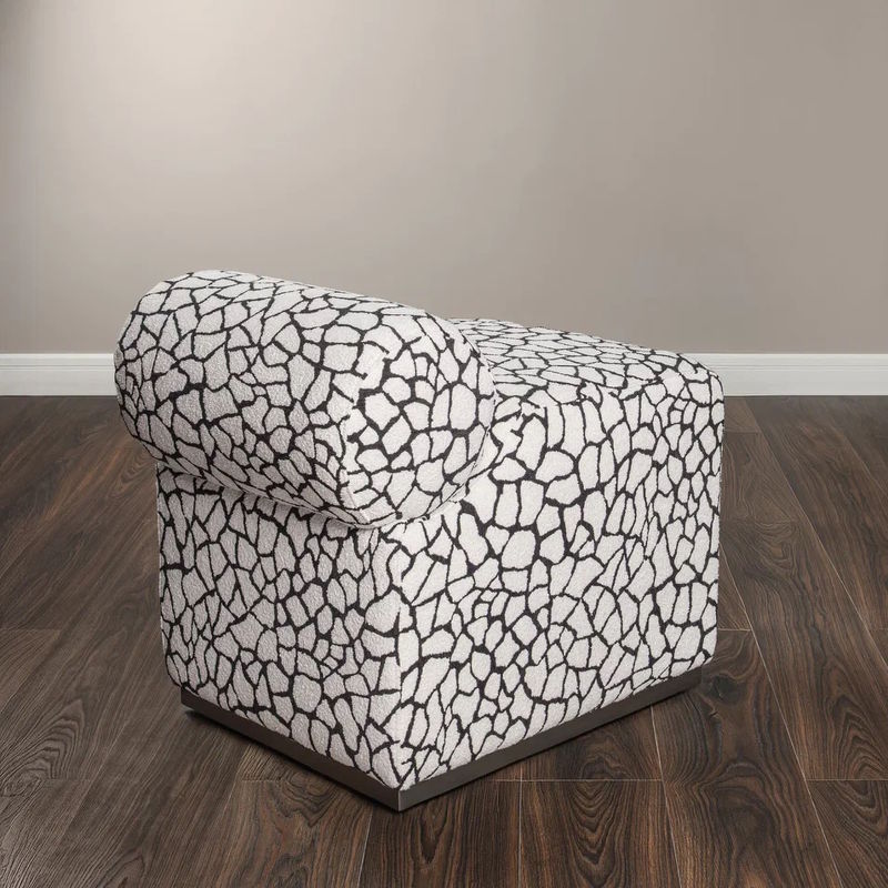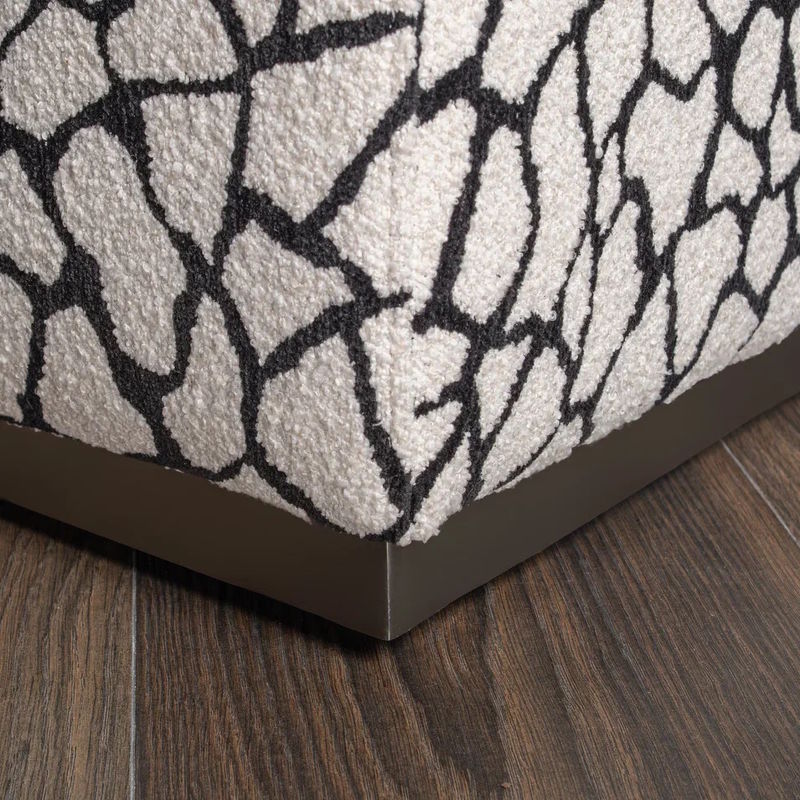 Каркас пуфа выполнен из массива березы, наполнитель - пенополиуретан. Пуфик обит тканью из ассортимента фабрики, основание металлическое в цвете матовый никель.