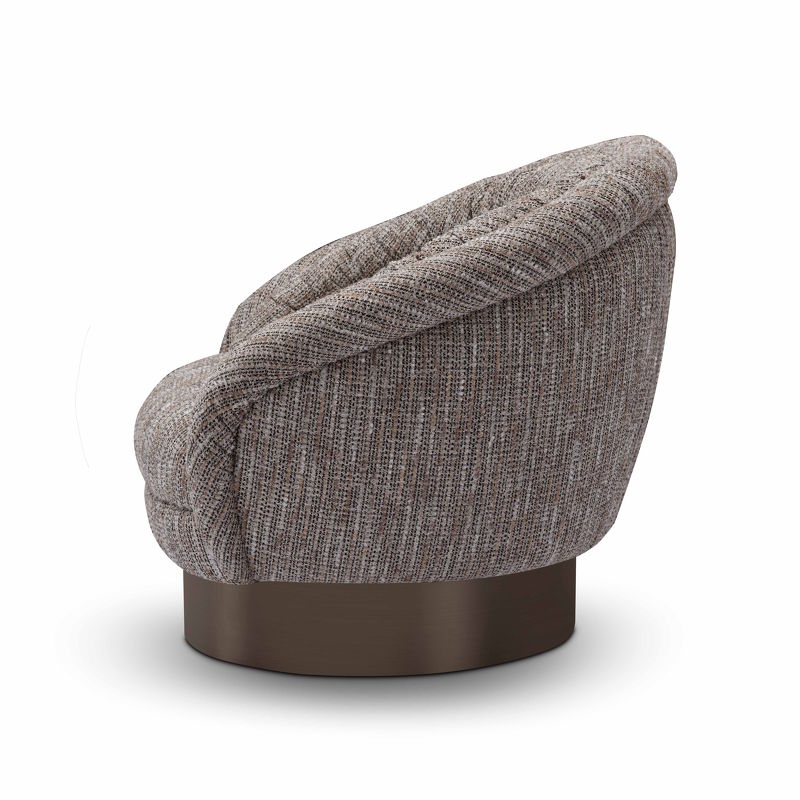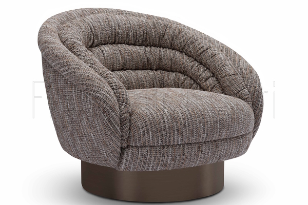 Кресло полностью выполнено в ткани на металлическом основании цвета латунь. Наполнитель - экологичный пенополиуретан.