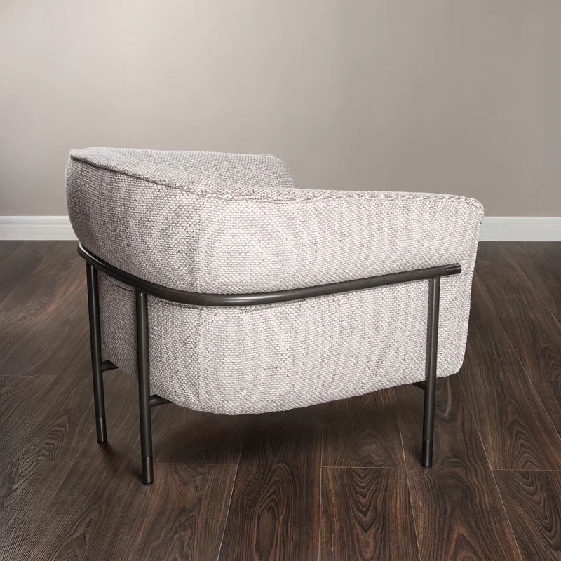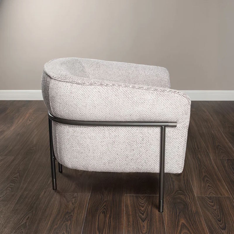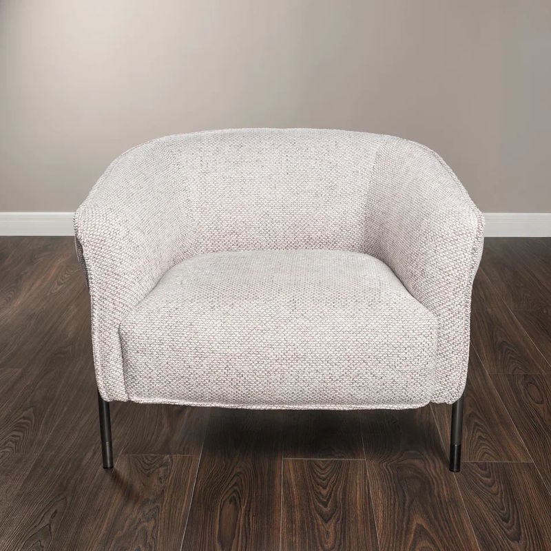 Кресло в ткани из ассортимента фабрики, дополнено утонченными черными металлическими ножками.