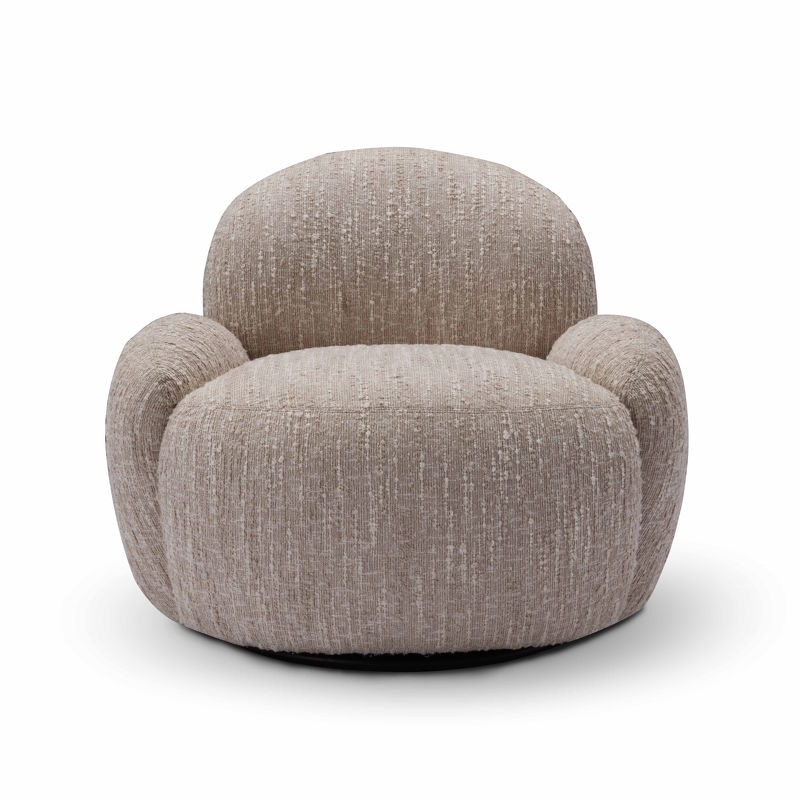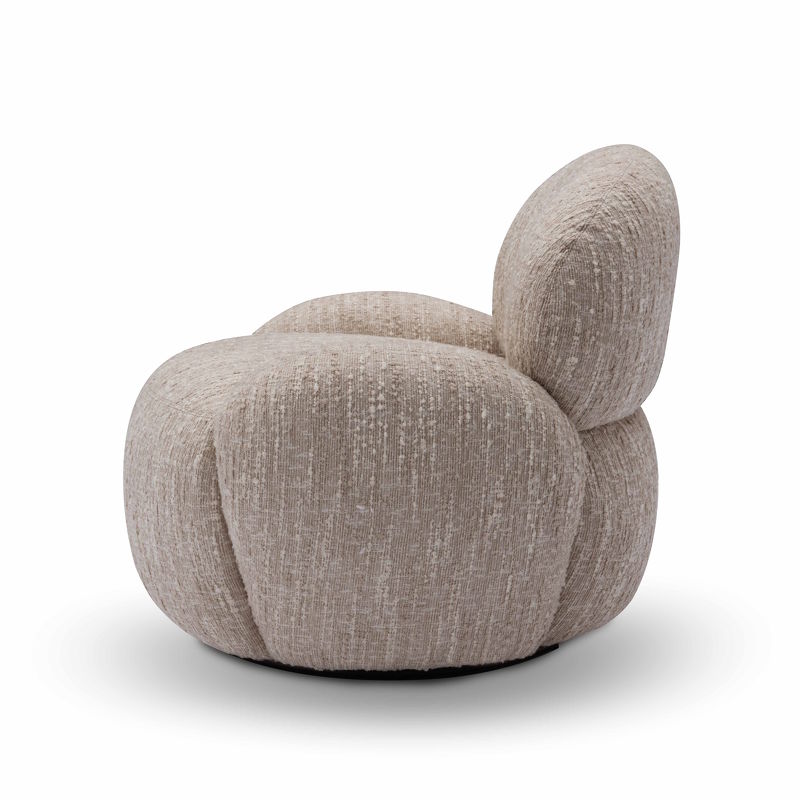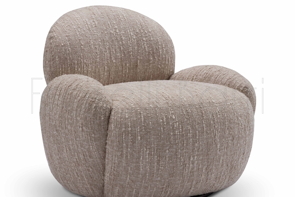 Уютное кресло от бренда Fratelli Barri, выполнено в ткани бежевых тонов, на черном матовом основании.