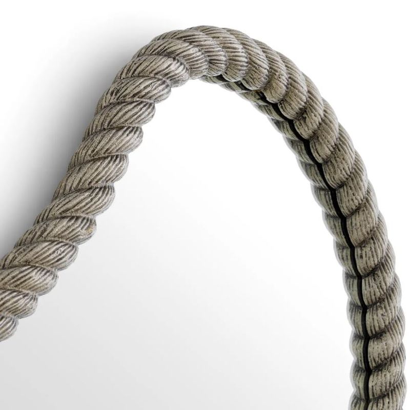 Рама зеркала создана вручную — каждый изгиб, каждый виток вылеплен с ювелирной точностью. Форма напоминает туго скрученный канат, застывший в своем пластичном движении. Текстура "веревки" придает поверхности невероятную тактильность и глубину, превращая обрамление в самостоятельный арт-объект.