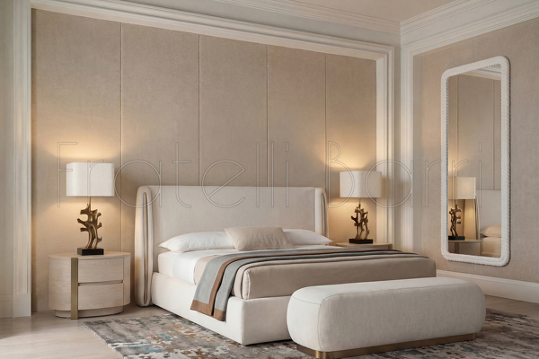 Кровать с решеткой, отделка ткань KSC20058LB-3, натуральный шпон дуба BT-054
